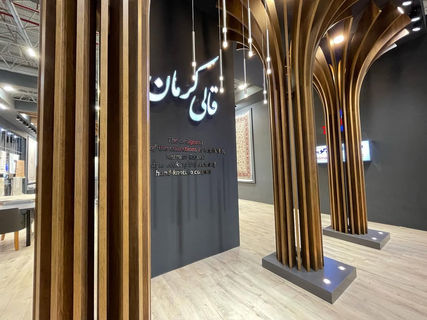 Almas Kavir Carpet’in 2024 Halı Fuarı’ndaki stand tasarımında; kemerli mimari formlar, koyu tonlu zeminler ve altın renkli detaylarla markanın köklü kültürel mirası modern bir yorumla ele alındı. Sergilenen halılar, simetrik yerleşim ve kontrollü aydınlatma sayesinde adeta bir sanat eseri gibi ön plana çıkarılırken, mekân bütününde güçlü, zarif ve premium bir atmosfer oluşturuldu. Bu tasarım, Almas Kavir’in halı sektöründeki ustalığını ve uluslararası marka değerini mekânsal bir anlatımla yansıtıyor.