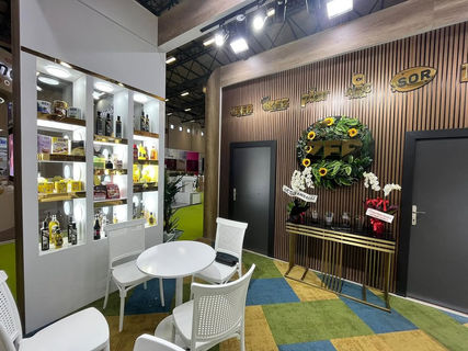 Zeryağ Gıda’nın 2024 Gıda Fuarı’ndaki stand tasarımında; açık renk paleti, cam detaylar ve yuvarlatılmış mimari formlar ön plana çıkarıldı. Şeffaf sergileme alanları ürünlerin net şekilde görünmesini sağlarken, geniş oturma düzeni ziyaretçiler için konforlu ve davetkâr bir ortam sunuyor. Doğal bitkisel dokunuşlar ve dengeli aydınlatma, markanın güvenilir ve kaliteli üretim anlayışını destekleyen bir atmosfer oluşturuyor. Bu stand, Zeryağ Gıda’nın gıda sektöründeki kurumsal ve çağdaş marka duruşunu mekâna taşıyor.